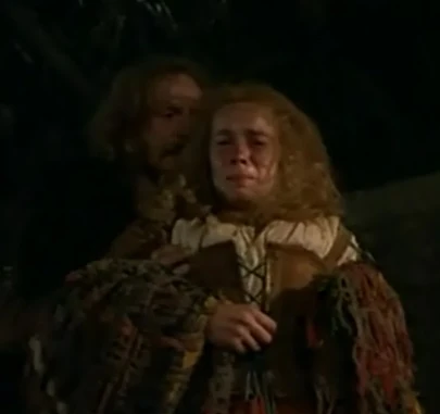Angus essayant de consoler sa cousine Kate devant le corps sans vie de Connor.